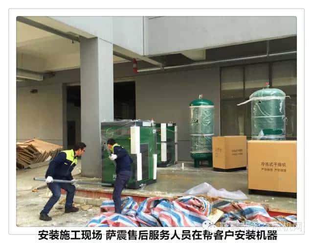 薩震空壓機(jī)的服務(wù)工程師們?yōu)樵摴具M(jìn)行機(jī)器安裝和開機(jī)調(diào)試。