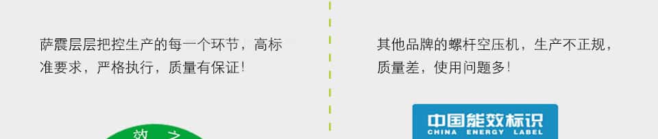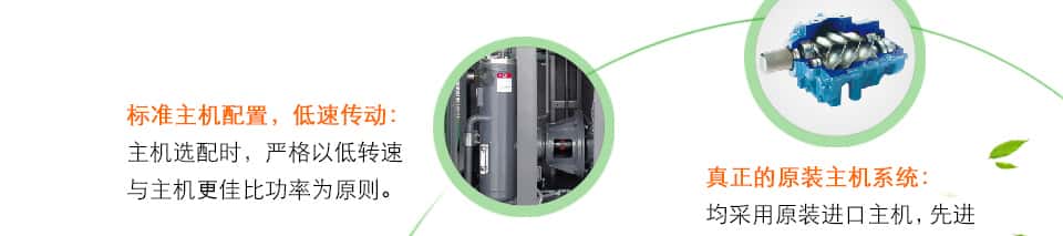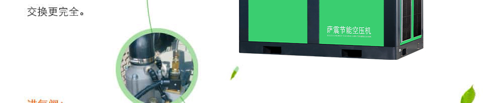 采用德國(guó)薩震空壓機(jī)主機(jī),無(wú)振動(dòng),低噪音,大轉(zhuǎn)子,低轉(zhuǎn)速,強(qiáng)大的心臟決定了整機(jī)的優(yōu)異性能。轉(zhuǎn)子經(jīng)嚴(yán)格的動(dòng), 靜平衡試驗(yàn), 使其運(yùn)轉(zhuǎn)平衡更好, 振動(dòng)更小, 噪聲更低,同時(shí)在直徑不變的情況下,轉(zhuǎn)子長(zhǎng)度增加,有效壓縮面積增加,從而達(dá)到流量增加,功耗降低。