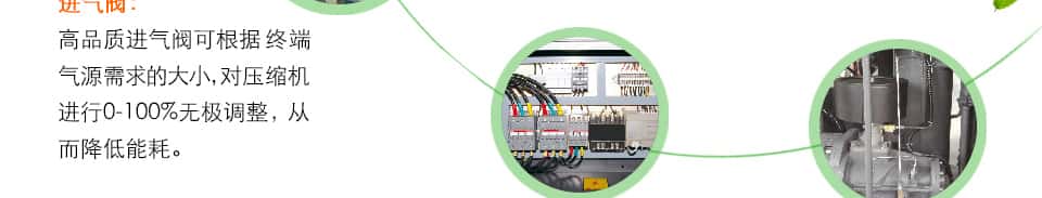 進(jìn)氣閥: 采用獨(dú)特的碟式進(jìn)氣閥,氣動(dòng)功能集約化,僅一個(gè)運(yùn)動(dòng)部件,可靠性高,無(wú)需日常維護(hù),并能隨著實(shí)際使用氣量的多少,對(duì)壓縮的氣量進(jìn)行0~~100%無(wú)級(jí)調(diào)解,自動(dòng)的加載和卸載, 從而降低了能耗,進(jìn)氣閥內(nèi)設(shè)有單向閥,以防止突然停機(jī)時(shí),油和空氣回流。壓力損失小,工作壽命長(zhǎng),是目前最可靠,效率最高的進(jìn)氣調(diào)節(jié)方式。