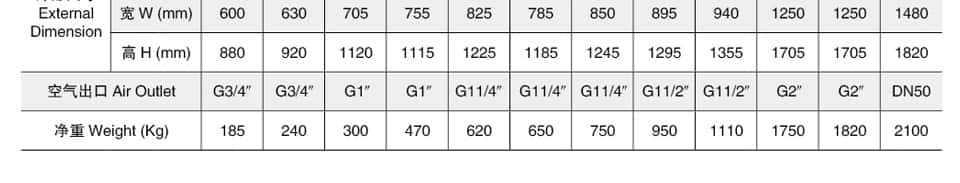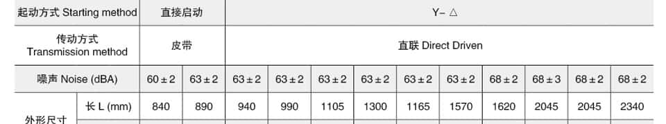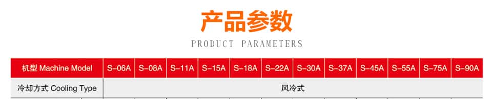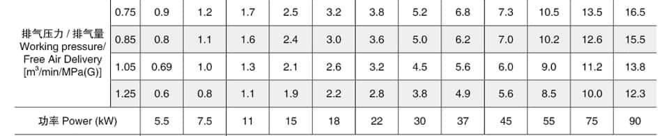 薩震5.5~90KW微油螺桿空壓機(jī)型號(hào)參數(shù):
