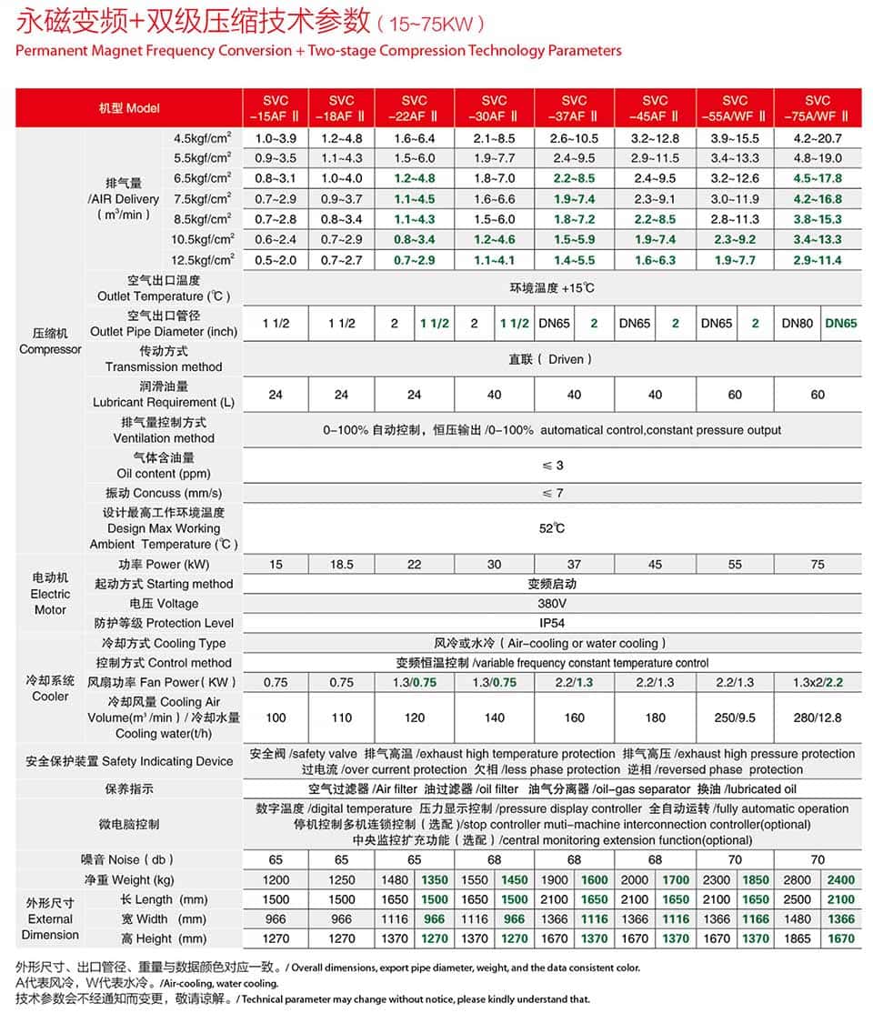 采用德國薩震空壓機主機,無振動,低噪音,大轉(zhuǎn)子,低轉(zhuǎn)速,強大的心臟決定了整機的優(yōu)異性能。轉(zhuǎn)子經(jīng)嚴格的動, 靜平衡試驗, 使其運轉(zhuǎn)平衡更好, 振動更小, 噪聲更低,同時在直徑不變的情況下,轉(zhuǎn)子長度增加,有效壓縮面積增加,從而達到流量增加,功耗降低。